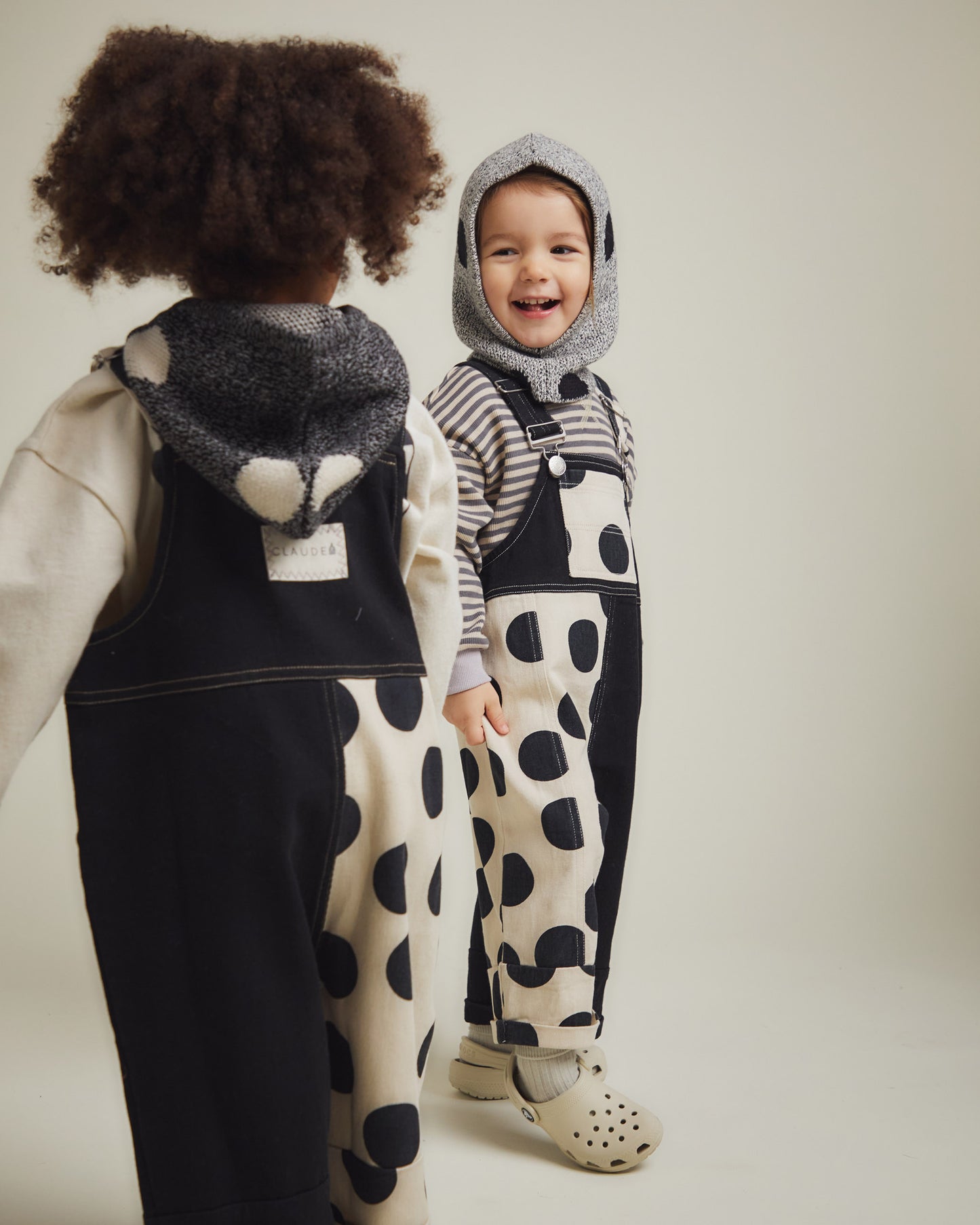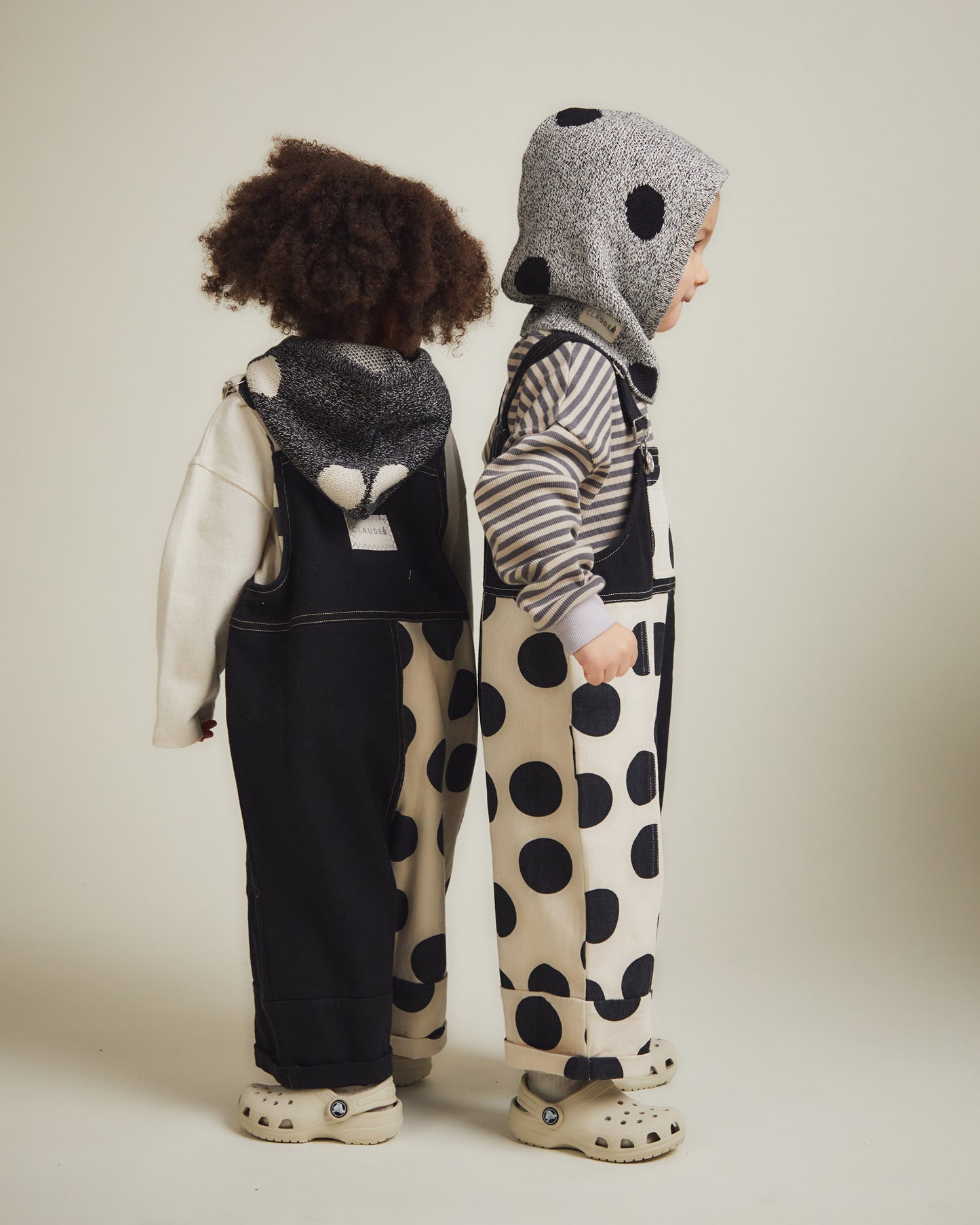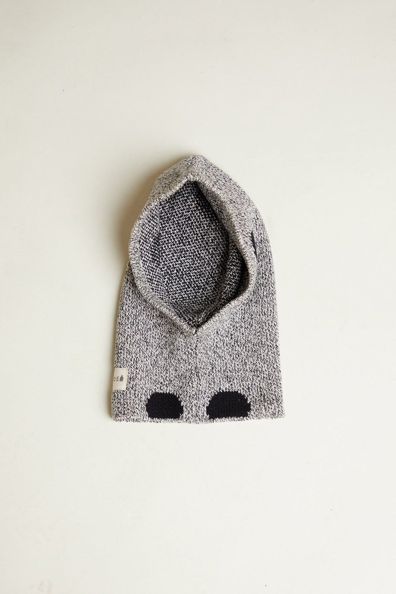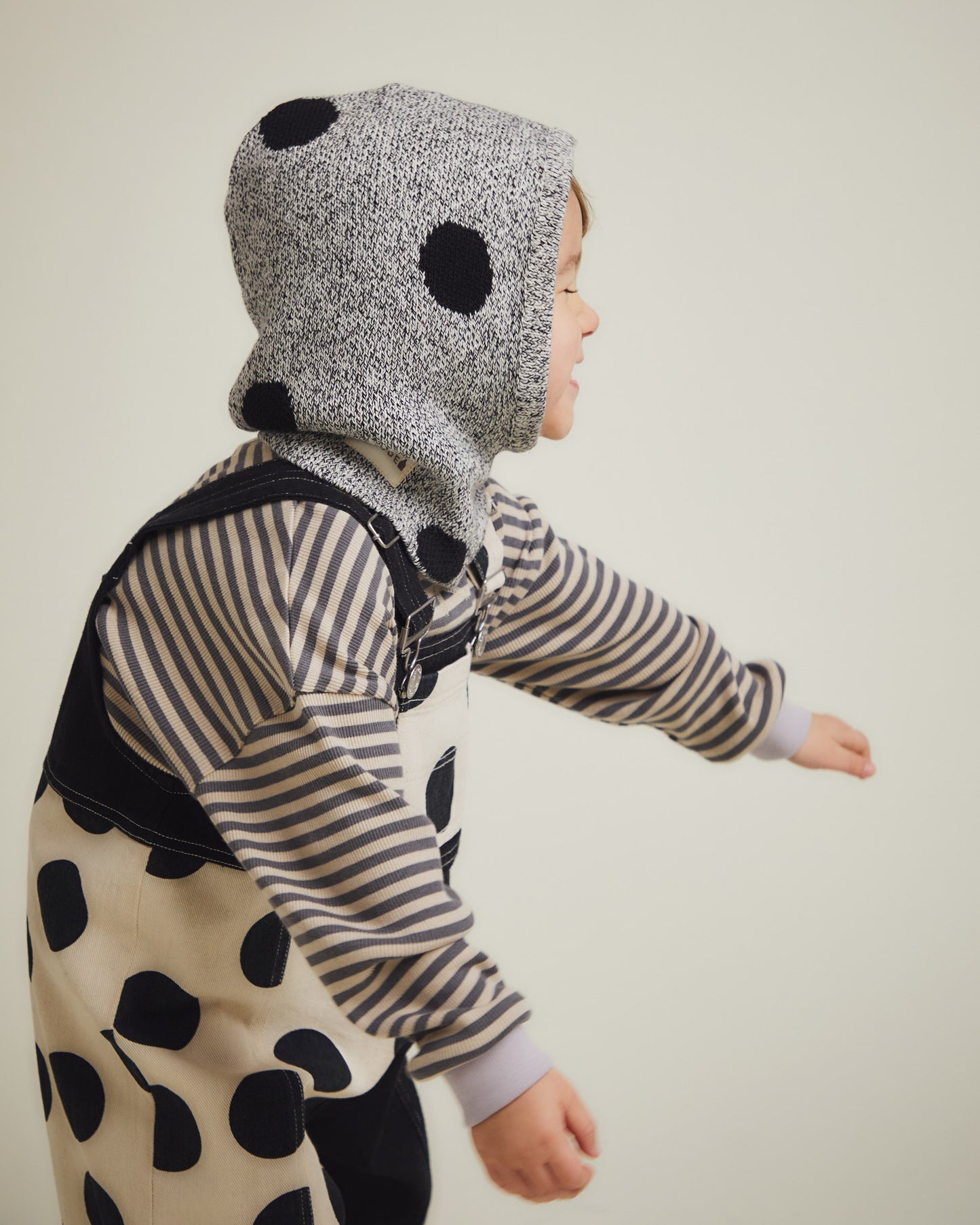 The Sutton Balaclava comes in grey with noir polka dots and is knitted from 100% organic cotton twisted yarn. Finished with our exposed Claude & Co label on the side for a signature touch.