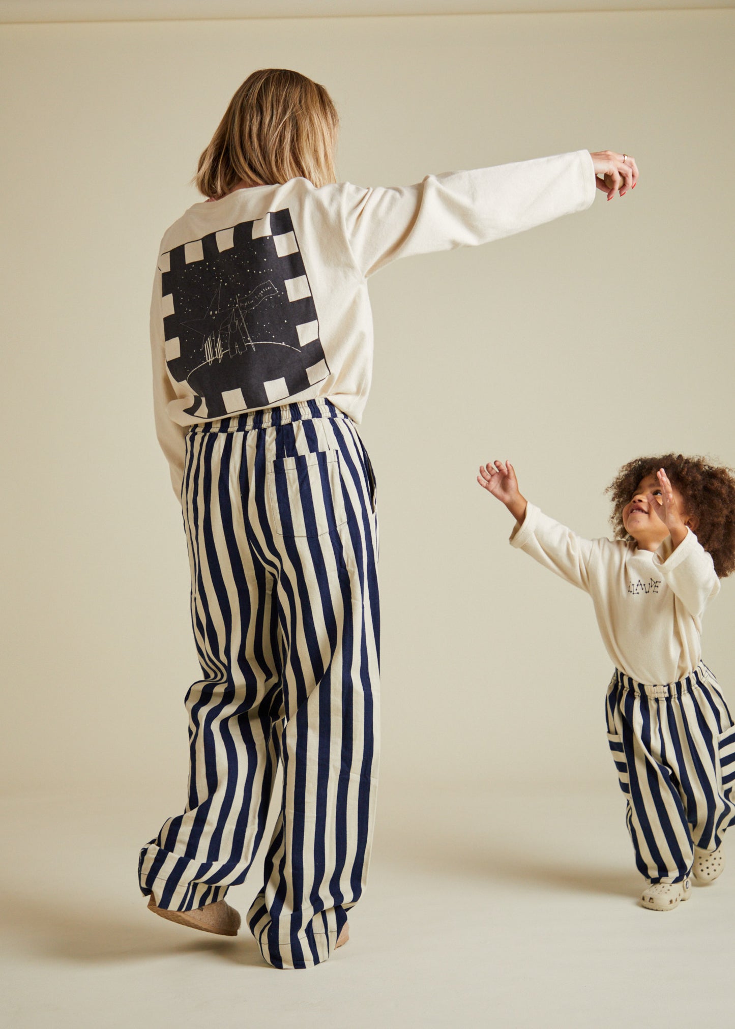 Regular price £34.00Meet the Lowe Midnight Stripe Trouser Adult, a classic baggy, oversized fit reimagined with a new wide-leg shape and adjustable drawstring waist - now in a timeless midnight navy stripe.