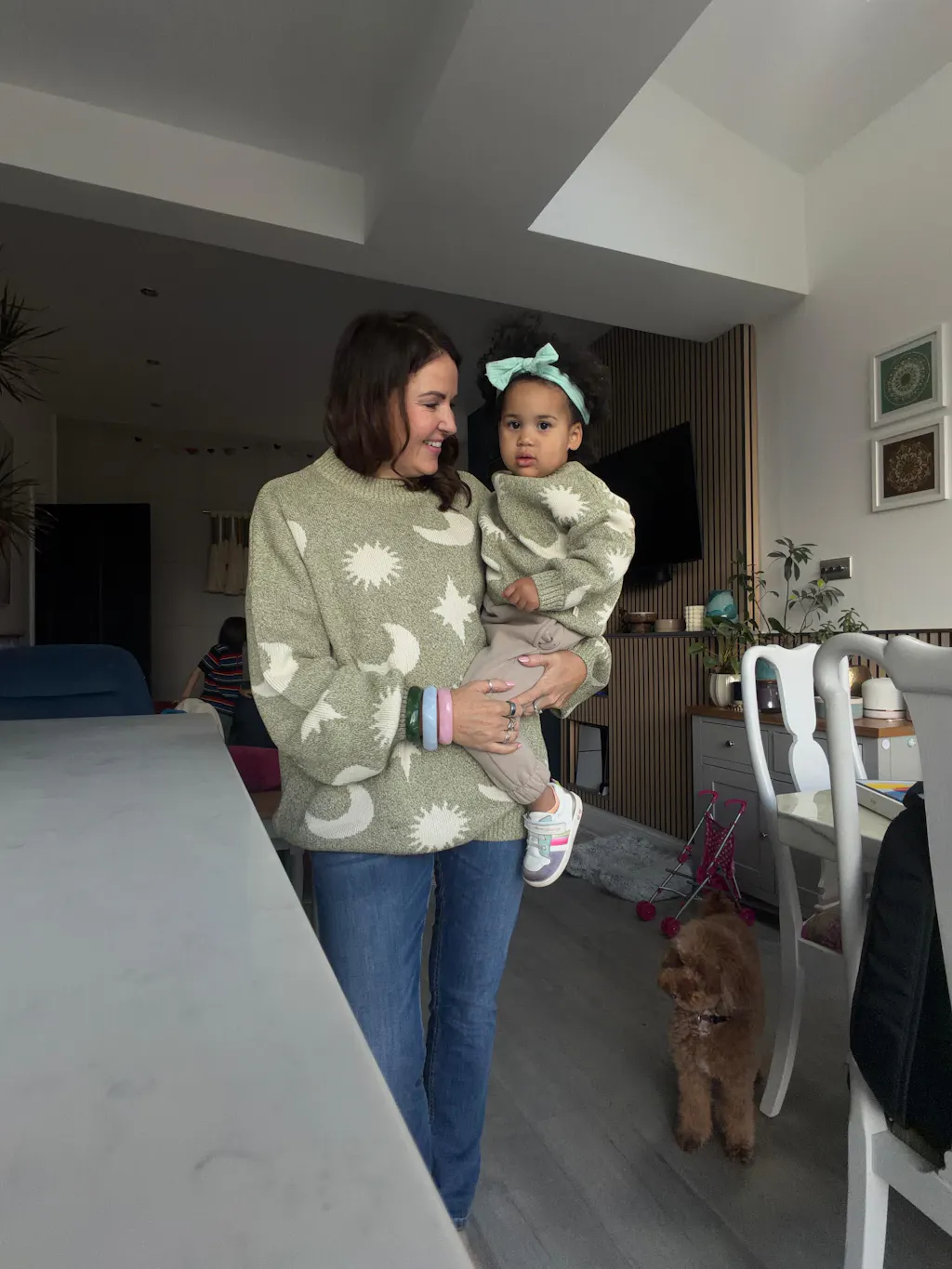 The Cozmo - our iconic best-swelling sweater, in Matcha green. Knitted with a celestial moon, star & sun pattern with our signature twisted yarn technique. Cut with oversized balloon sleeves.