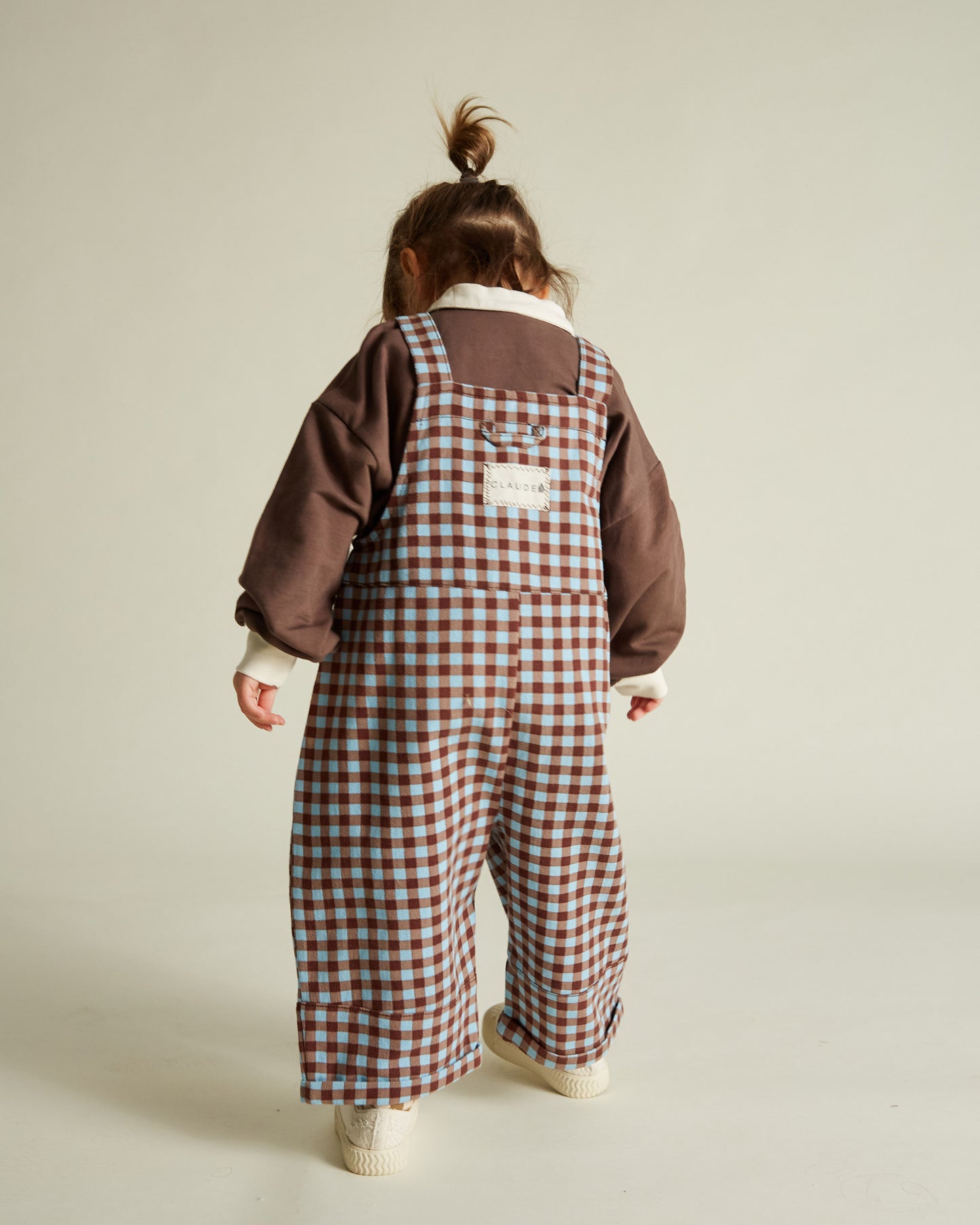 August Sky Gingham Dungaree - back tab