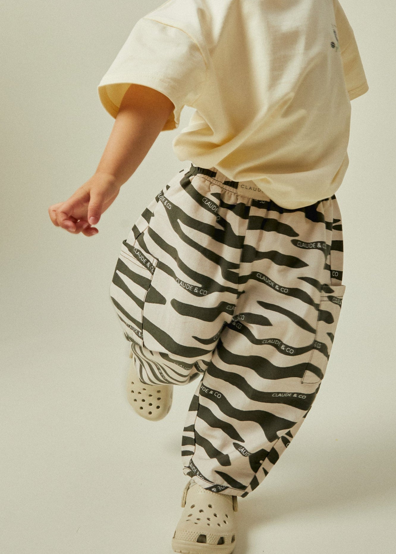 Intentionally designed to go with just about anything, our unisex children’s bottoms are made using 100% soft organic cotton twill – with playful, oversized pocket details and an elasticated waistband that is both stylish and comfortable. If you look closely, you’ll notice ‘Claude & Co’ written in the print itself - a detail we love.