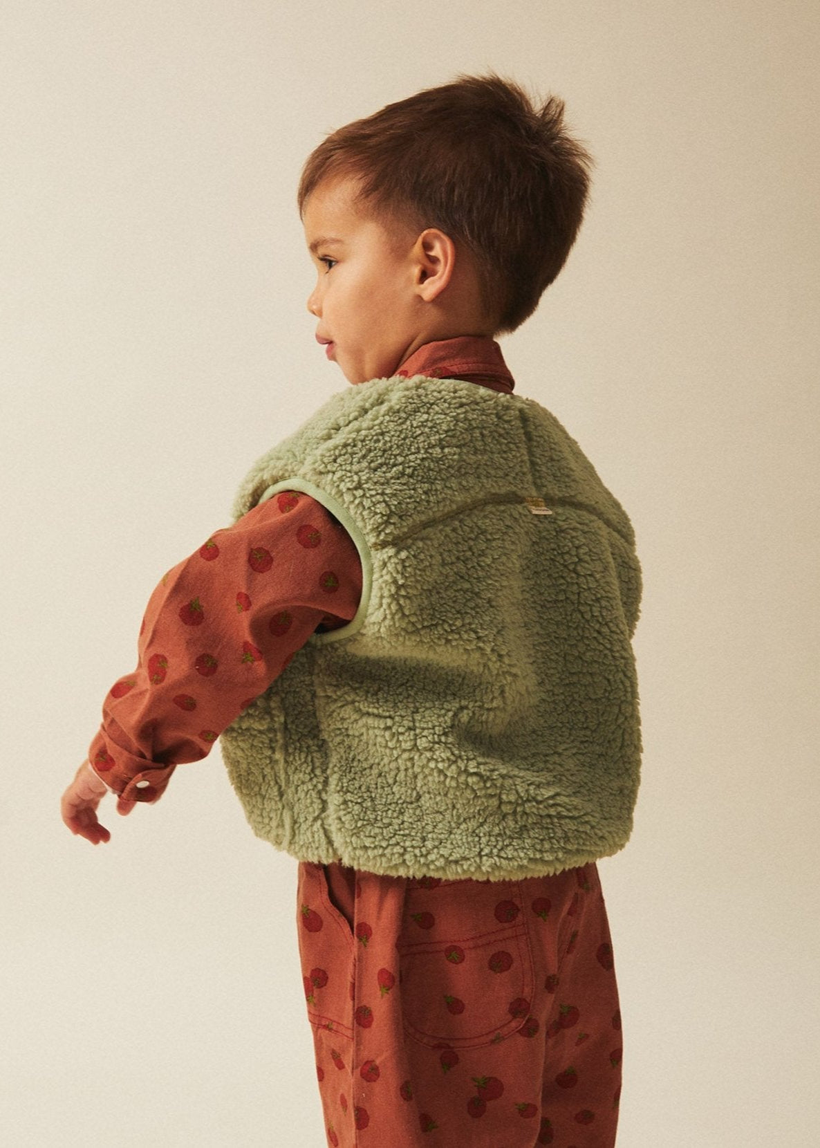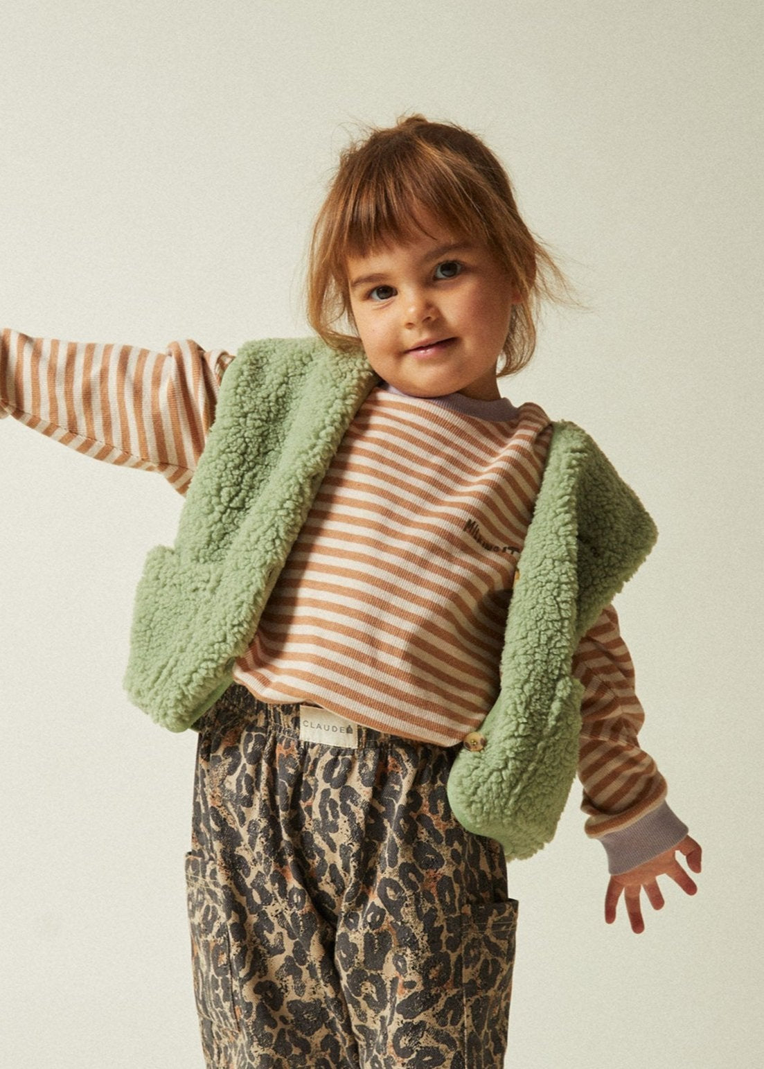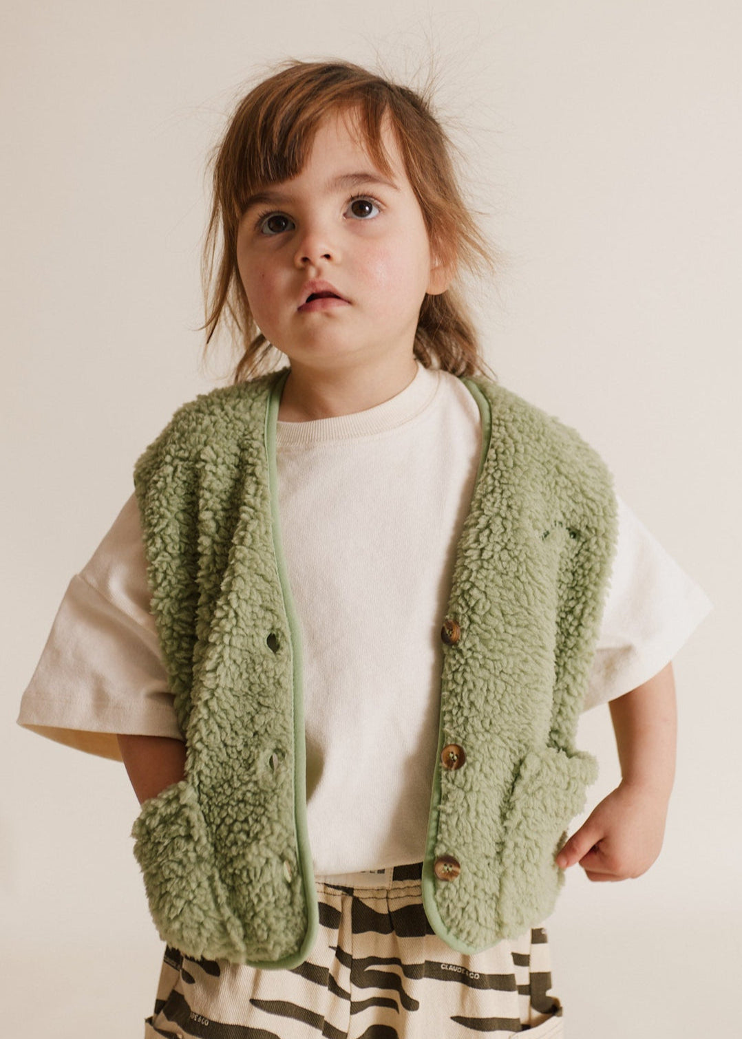 Regular price £22.80Our fluffiest fully recycled borg – with a super soft cotton lining and piping along the edges that make it sit effortlessly. Available in three beautiful shades of sand, sage and bark – featuring two oversized pockets, smoky-tortoise shell buttons, and our signature wave lettering Claude and Co on the front – this is the perfect gilet; believe us, you’ll never need another. It’s not only a stylish layer, but it will also keep you and your little ones warm and snuggly out and about.