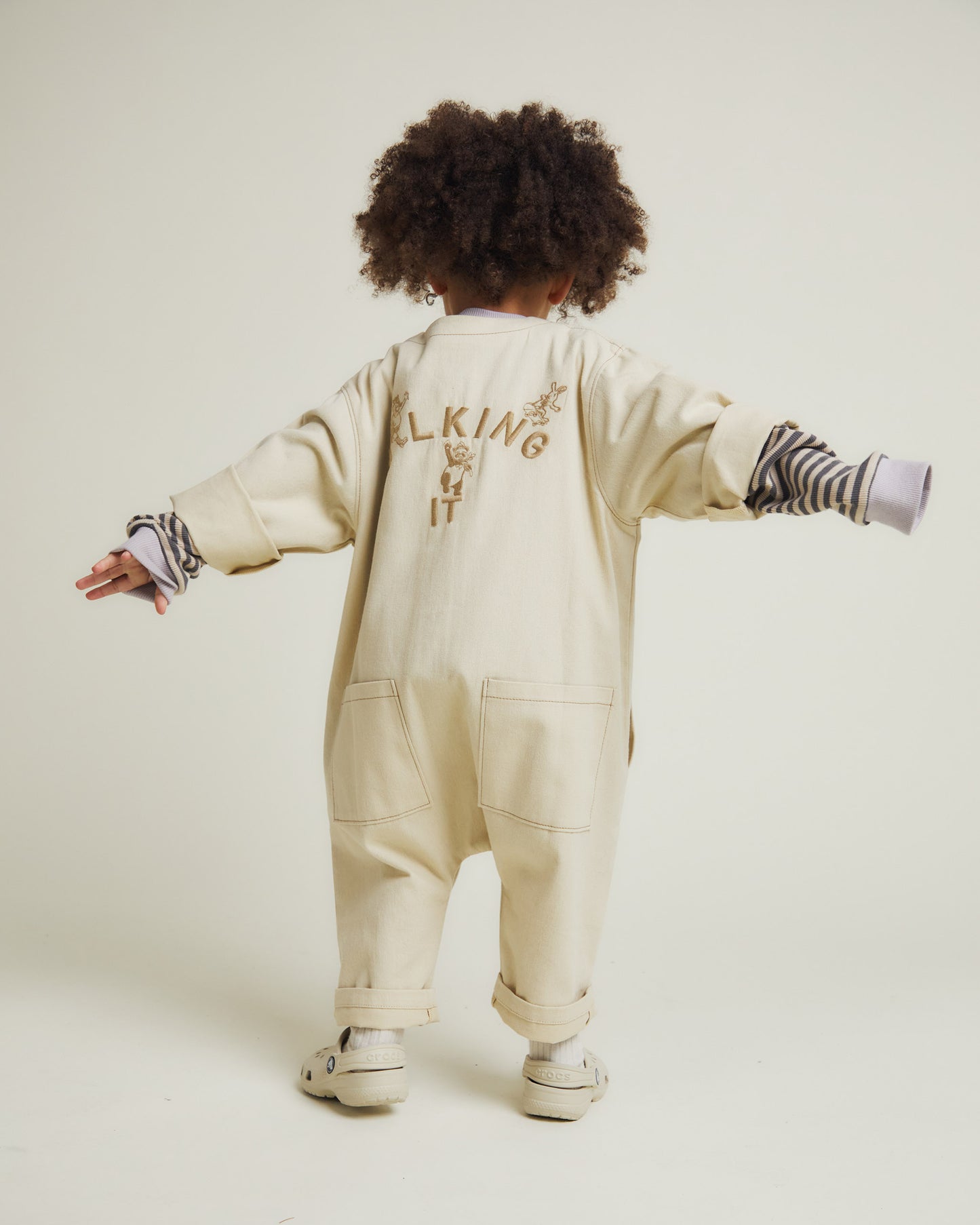 Our very favourite collaboration with our friends at Ando Stores, exclusive to both our websites. Overalls in different colours with our artist embroidery combining our two brands.