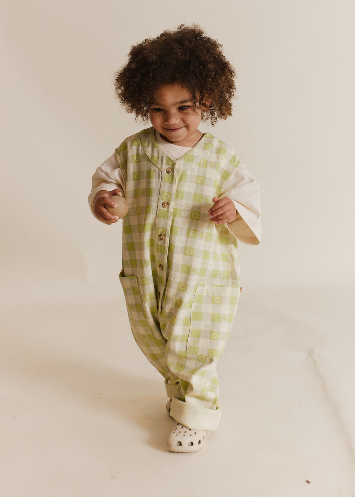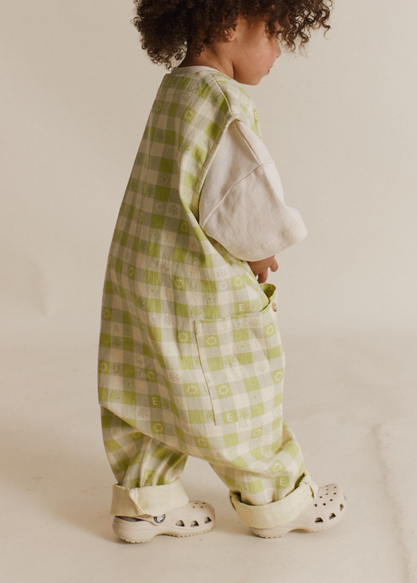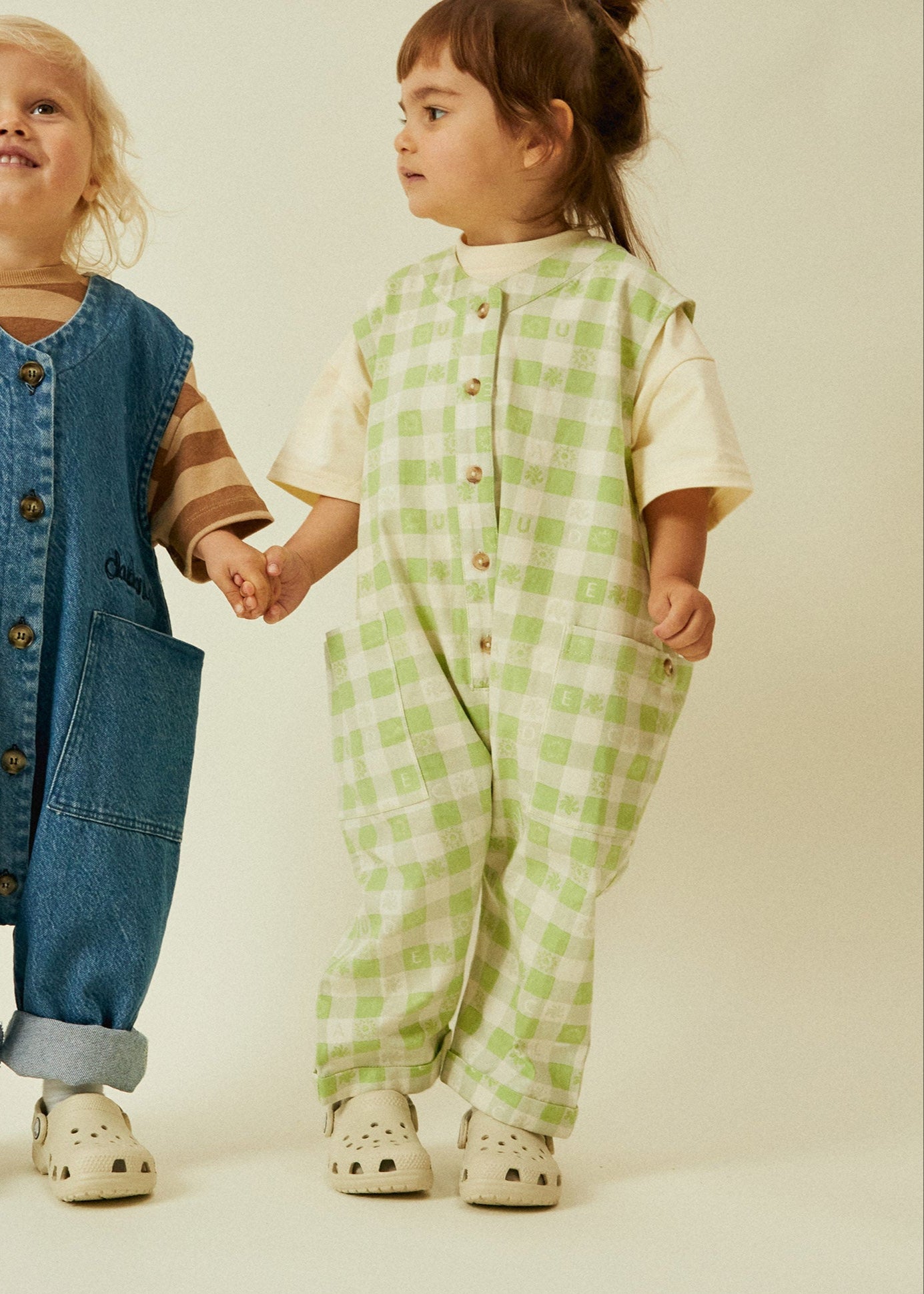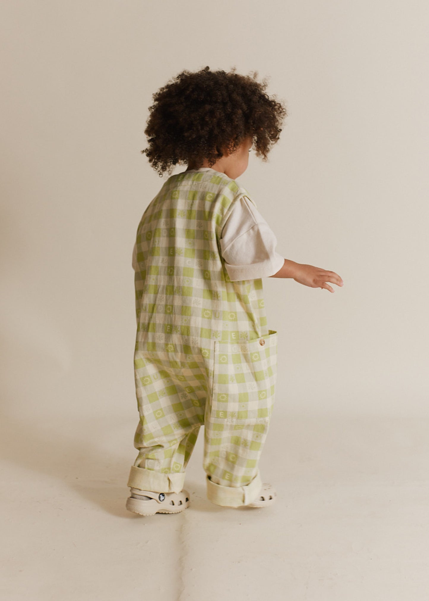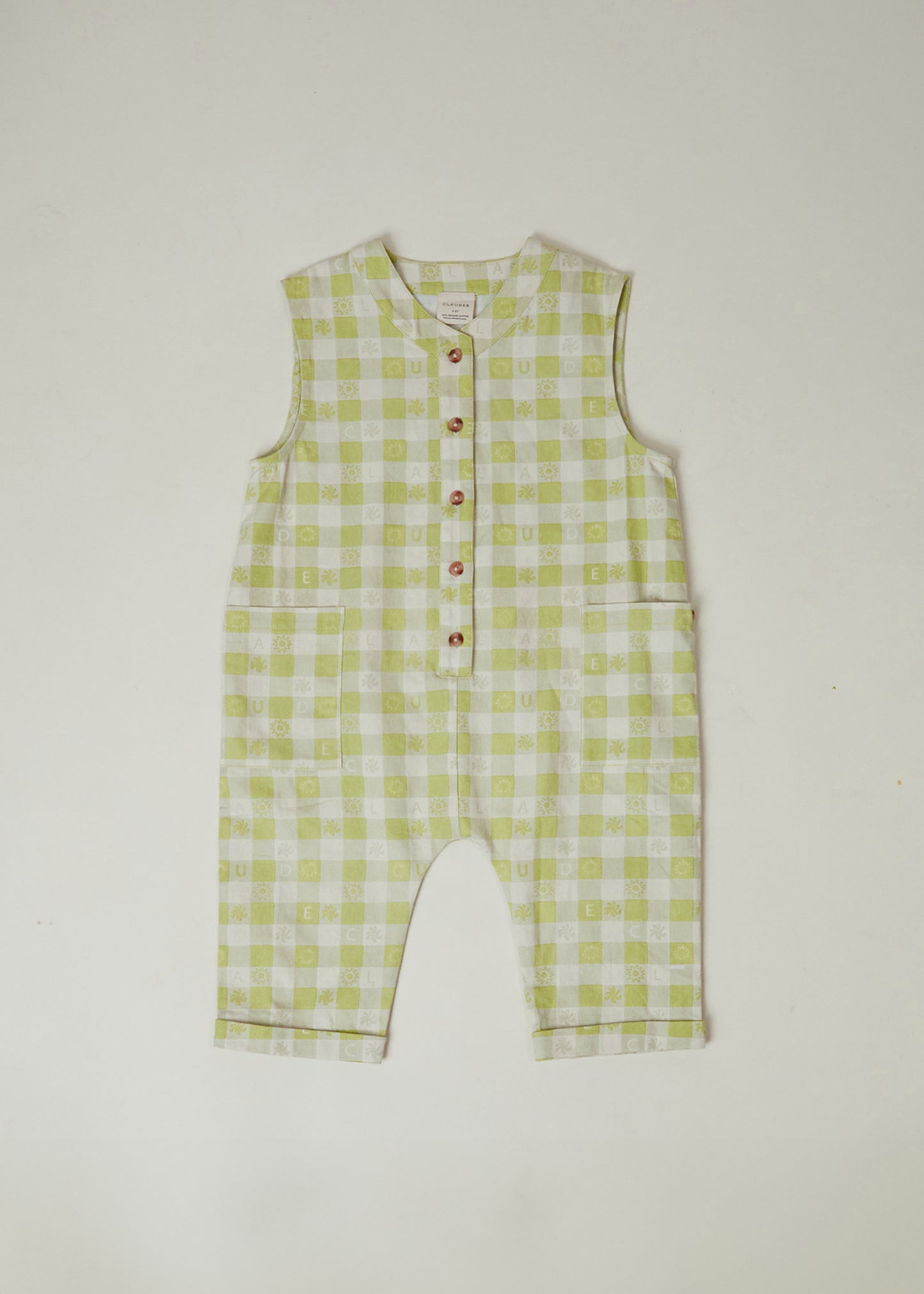 Introducing a brand-new sleeveless overall shape and wardrobe icon – in a beautiful cream and muted light-green gingham print pattern. This is the ideal piece for layering over and under that will take you seamlessly through the seasons.