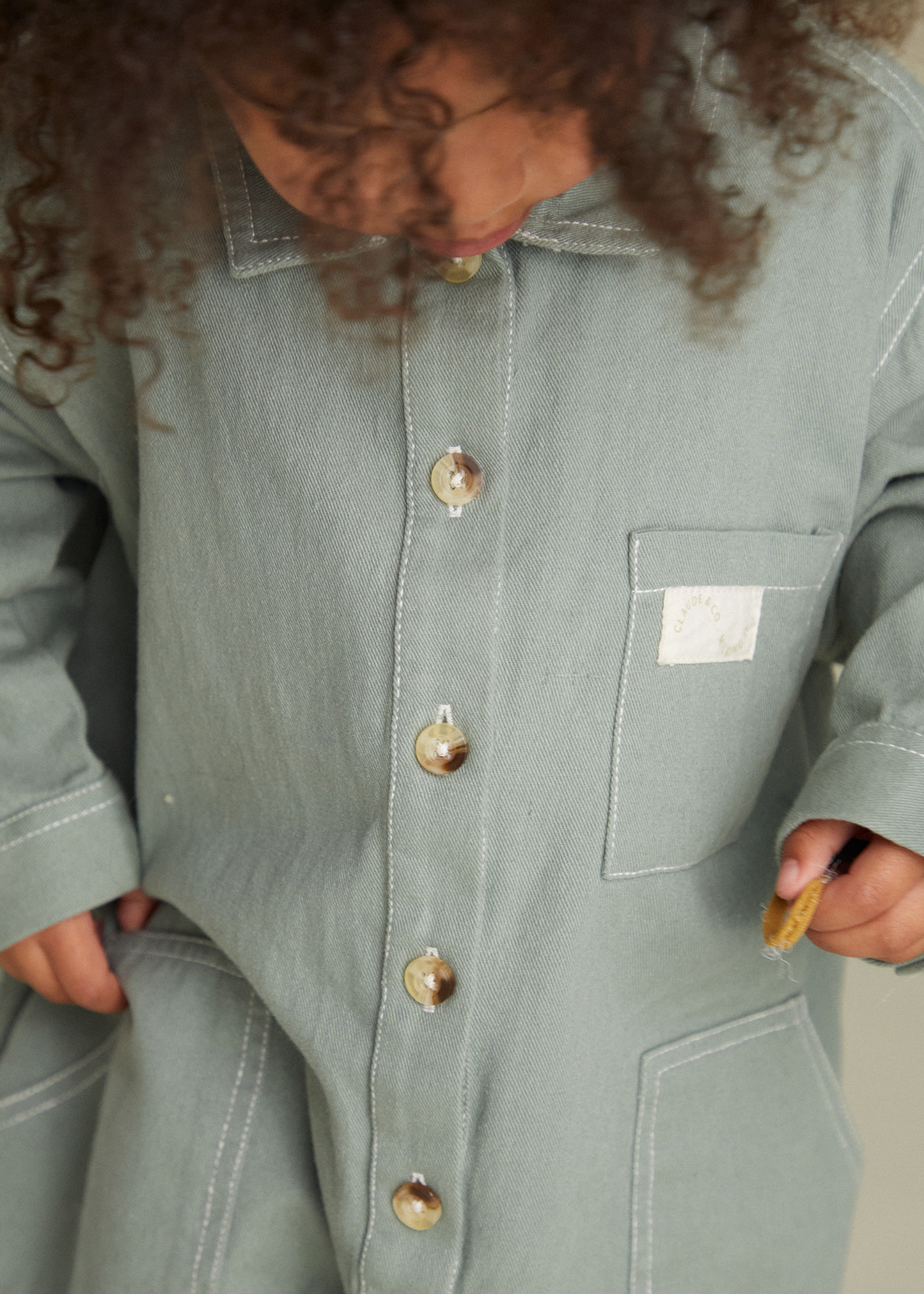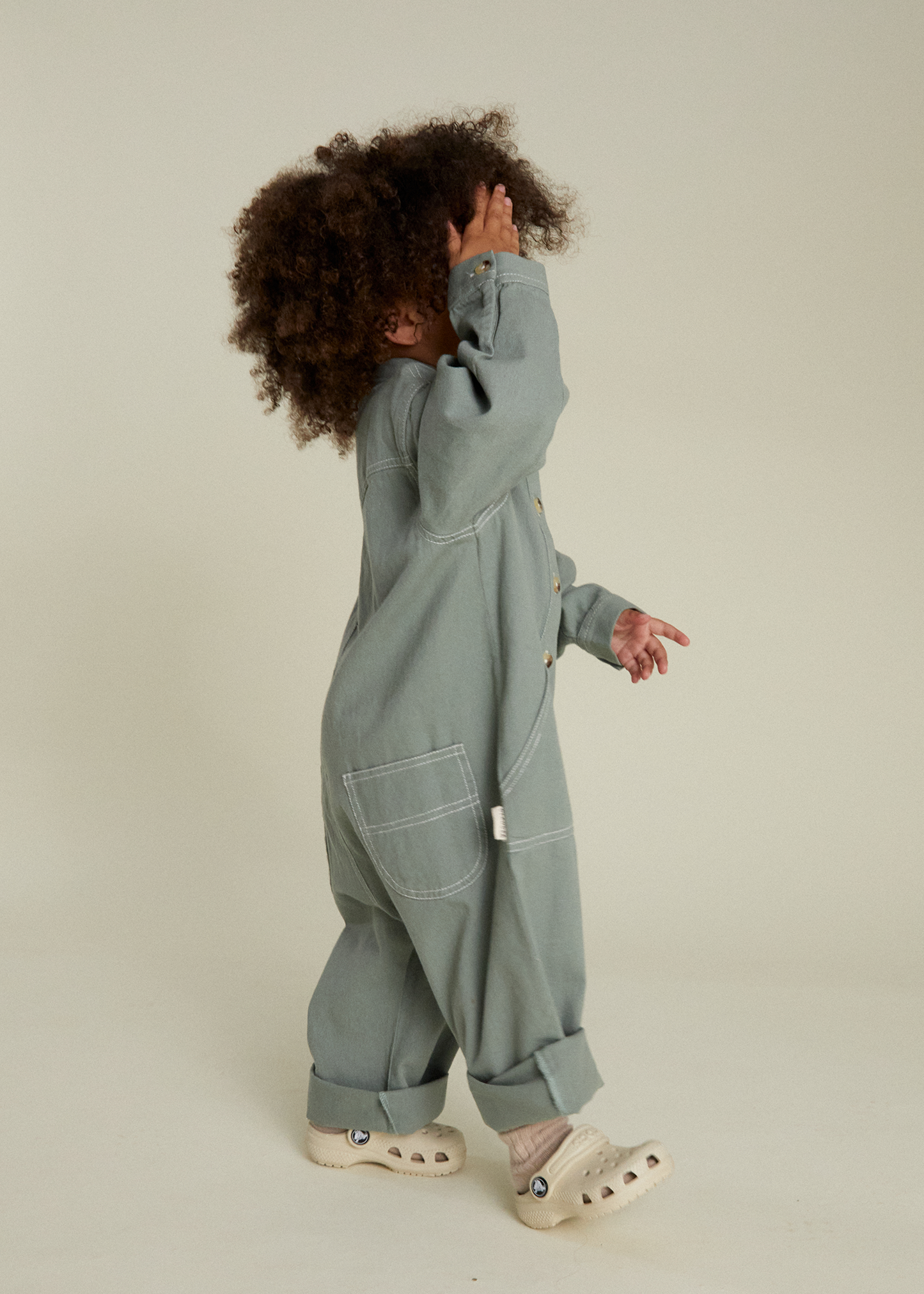 Our iconic best-selling western overall in sea green is a popular choice for a reason. Verstile, oversized, durable and comfortable. The colour goes with all and it's a perfect neutral but with a bit more.